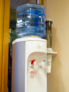 らせん階段を下りると不思議な空間が迎えてくれます。テラコッタの大きな「かめ」から水盤に水が流れ込んでいます。春から夏にかけては、水の上を霧が漂っていますので、涼しさを感じていただけるかも・・。