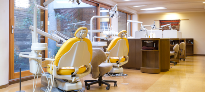 いけもり矯正歯科の診療室は地下1階です。地下とは言え、診療室は床から天井まで、また、壁面いっぱいの窓ガラスで、ドライエリアに面しています。