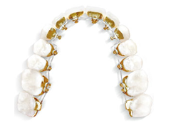 金合金でフルオーダーメイドの舌側(裏側)矯正歯科装置です。歯にシッカリと固定できるので、効率よく歯を動かすことができます。また、従来の装置では装着しにくかった萌(は)えかけの歯にも、問題なく装着できるため、思春期頃のお子さんにも使用可能