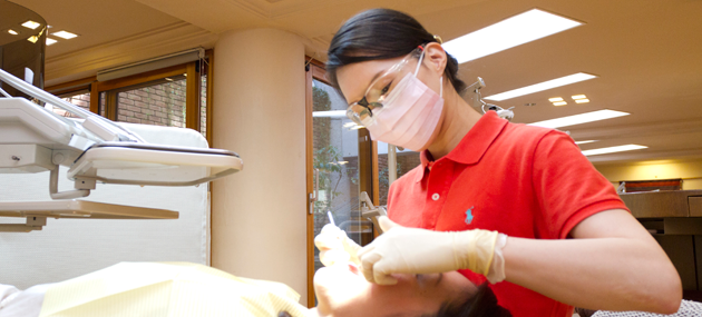 来院時にもお口の中の清掃状態を確認し、専用器具によるクリーニングや清掃方法をアドバイスしています。