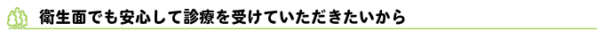 患者さんを守るための環境には妥協は許されません。衛生面においても安心して診療を受けていただけるよう、これからもチカラを入れていきます。